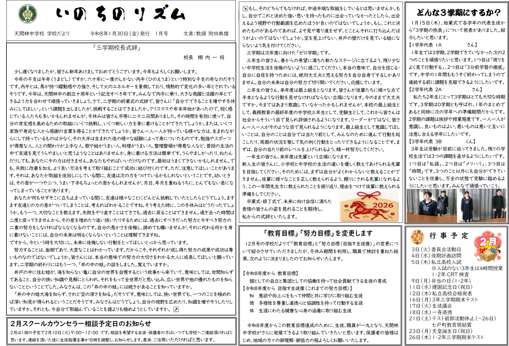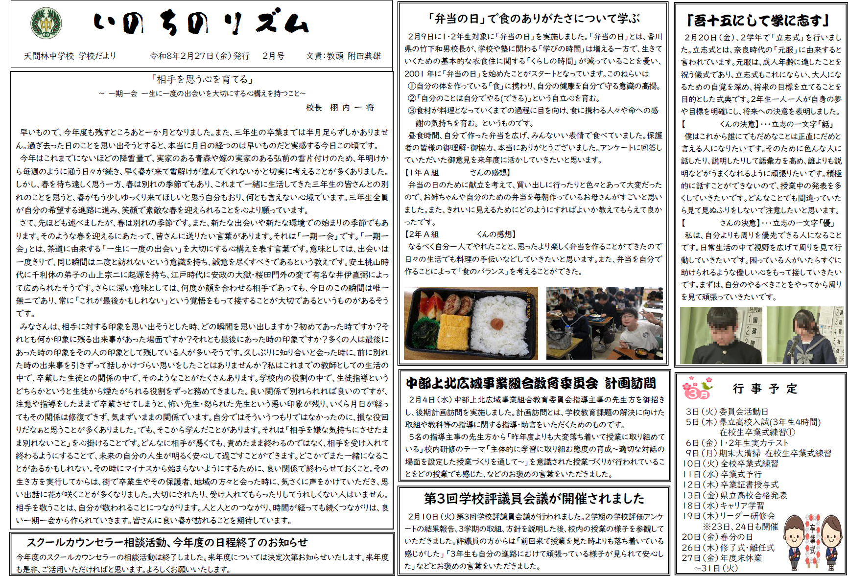 2月9日の「弁当の日」の生徒感想を写真集(生徒の様子等)の項目に掲載しました。